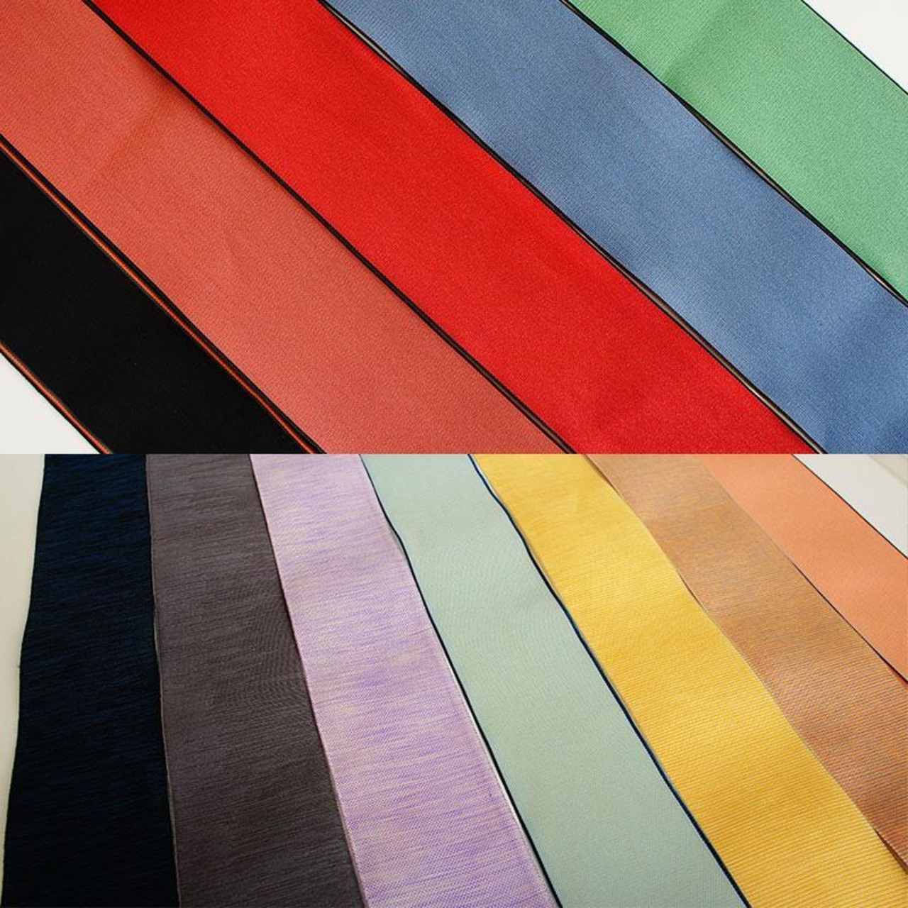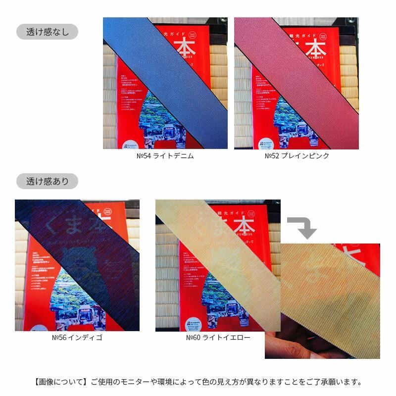 商品説明 お客様待望の無地の畳縁、そしてリバーシブルです。無地のみで作ったり、柄の縁と併せたりと組み合わせが広がります。無地なので面積の広い作品、畳縁バッグなどにも最適です。