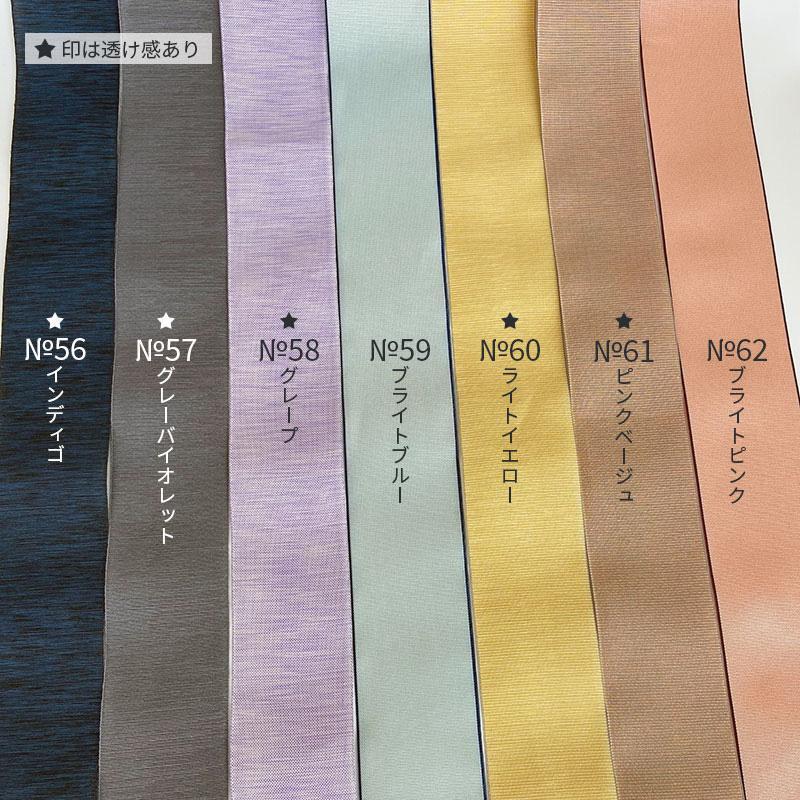 インディゴ、グレーバイオレット、グレープ、ライトイエロー、ピンクベージュ